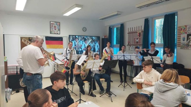 Október 16-án délután került megrendezésre iskolánkban a hagyományos országismereti vetélkedő, az Oktoberfest, melyre az idén a 9-12. évfolyamos német nyelvet tanuló diákjaink közül 12 csapat nevezett. Az eseményt, a csak erre az alkalomra alakult fúvószenekar polkája nyitotta meg. A 12 lelkes zenész iskolánk tanáraiból és diákjaiból, valamint a Gyulai Erkel Ferenc Alapfokú Művészeti Iskola tanáraiból és növendékeiből verbuválódott, Csökmei Gergő tanár úr irányításával.